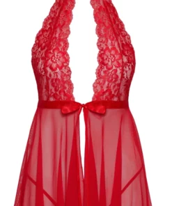 Kissable Babydoll L/XL – czerwona halka z koronką i stringami