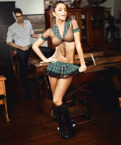 - Elementy ozdobne: połyskujący pierścień z dżetow przy szyi, subtelna zawieszka w kształcie serca oraz odpinane dekoracyjne łańcuszki na uda i w okolicy kroku (możliwość ich demontażu podnosi komfort użytkowania i ułatwia pielęgnację produktu).
