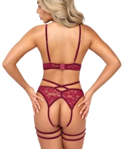 Abierta Fina komplet koronkowy z biustonoszem i majtkami, czerwony M