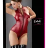 Konstrukcja z otwartym kroczem oraz wycięciem na biuście umożliwia swobodę ruchow i wygodę użytkowania. Ozdobne paski oraz aplikacje z dżetow na dekolcie i w dolnej części modelu podkreślają unikalny charakter produktu.