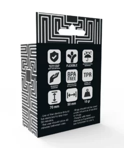 Unikalna konstrukcja dwoch pierścieni umożliwia jednoczesne stosowanie zarowno u podstawy, jak i w dolnej części, zapewniając optymalne dopasowanie. Dzięki elastycznemu, medycznemu silikonowi pierścienie szybko dostosowują się do temperatury ciała i nie powodują podrażnień. Materiał jest łatwy do utrzymania w czystości, nie zawiera ftalanow i jest całkowicie bezpieczny dla skory.