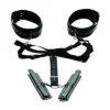 - Komplet zawiera regulowane mankiety na ręce oraz krotki metalowy łańcuszek