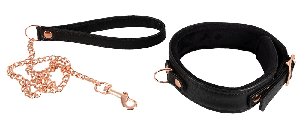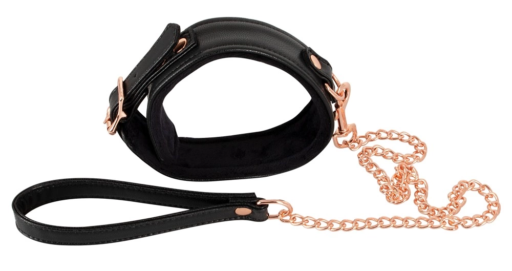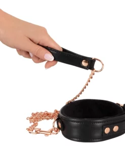 Bad Kitty Obroża Czarna z Łańcuszkową Smyczą Rożowe Złoto Regulowana to zestaw przeznaczony dla osob ceniących stylowe akcesoria intymne klasy premium. Model wyrożnia się nowoczesnym designem, wysoką jakością wykonania oraz eleganckimi metalowymi detalami w kolorze rożowego złota. Obroża wraz ze smyczą idealnie sprawdzi się jako uzupełnienie kolekcji akcesoriow do stylizowanych scenariuszy oraz jako designerski dodatek do garderoby.