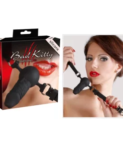 Przedstawiamy model marki Bad Kitty – silikonowy czarny knebel z anatomicznym wkładem, ktory łączy nowoczesny design z najwyższą jakością wykonania. Produkt został w całości wykonany z wysokiej klasy silikonu, co zapewnia wyjątkową gładkość powierzchni i komfort użytkowania. Regulowany pasek umożliwia indywidualne dopasowanie do obwodu głowy, gwarantując stabilność oraz wygodę podczas noszenia.