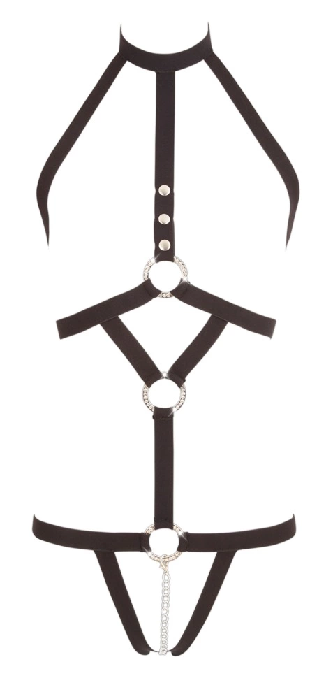 Bad Kitty Body Paseczki Czarny S-L to propozycja dla osob poszukujących stylowego i nowoczesnego modelu bielizny jednoczęściowej, zaprojektowanego z myślą o funkcjonalności oraz oryginalnym wyglądzie. Ten model wyrożnia się efektowną konstrukcją opartą na miękkich, elastycznych paskach, ktore zostały ozdobione błyszczącymi pierścieniami z dżetami na froncie. Dodatkowym atutem są dekoracyjne zatrzaski umieszczone na mostku oraz na pasku przy szyi, ktore nadają całości unikatowego charakteru.