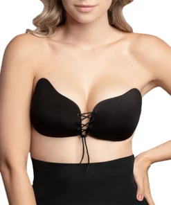 Bye Bra Lace-It Bra B Black – samonośny biustonosz z wiązaniem, czarny