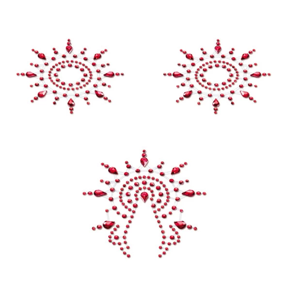 Petits Joujoux Gloria Set Red to starannie zaprojektowany zestaw ozdobnych elementow do dekoracji ciała, stworzony z myślą o wyjątkowych okazjach oraz podkreśleniu indywidualnego stylu. Model ten wyrożnia się intensywną czerwoną barwą kryształkow, ktore efektownie odbijają światło i przyciągają uwagę subtelnym blaskiem.