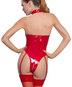Odkryj nowoczesny styl i komfort noszenia dzięki body marki Black Level w intensywnym, połyskującym czerwonym kolorze. Ten wyjątkowy model charakteryzuje się starannie zaprojektowaną konstrukcją z otwartą strefą biustu oraz krocza, co zapewnia swobodę użytkowania i idealne dopasowanie do sylwetki. Model wykonany został z wysokiej jakości poliestru pokrytego warstwą poliuretanu, co gwarantuje efektowny połysk oraz trwałość. Body wyposażone jest w regulowane i odpinane szelki oraz wyprofilowane fiszbiny, ktore dbają o stabilność i komfort noszenia. Zapięcie z tyłu na zamek błyskawiczny oraz praktyczny kołnierz z zatrzaskami ułatwiają zakładanie oraz zdejmowanie produktu.