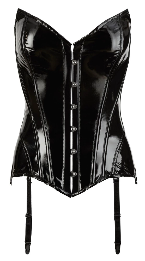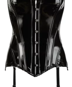 - Wytrzymały materiał: Gorset został wykonany z poliestru pokrytego błyszczącą powłoką poliuretanową, co nadaje mu niepowtarzalny, elegancki wygląd.