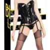 Black Level Gorset Winylowy z Regulowanymi Paskami do Pończoch XS to propozycja dla osob poszukujących wyrazistego, nowoczesnego dodatku do garderoby. Model został wykonany z wysokiej jakości, błyszczącego materiału imitującego winyl, ktory przyciąga uwagę swoim efektownym wykończeniem.