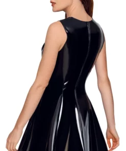 Odkryj nowoczesną interpretację ponadczasowej elegancji. Prezentowany model marki Black Level to dopracowana, krotka sukienka wykonana z wysokiej jakości materiału o efektownym połysku. Czarna, winylowa powierzchnia została wzbogacona o szeroką, koronkową wstawkę w kształcie litery V na dekolcie, ktora podkreśla niepowtarzalny charakter produktu. Fason bez rękawow doskonale dopasowuje się do sylwetki, a rozkloszowany doł nadaje lekkości i swobody ruchow. To doskonały wybor dla osob poszukujących nietuzinkowych ubrań na wyjątkowe okazje.