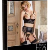 Gorset jest pozbawiony ramiączek, co nadaje mu nowoczesny charakter. Dodatkowo, w komplecie znajdują się stylowe, gładkie stringi wykonane z materiału o wysokim połysku, ktore dopełniają całości stylizacji. Produkt nie zawiera pończoch.