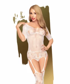 Penthouse Sugar Drop XL – białe bodystocking z eleganckim koronkowym haftem