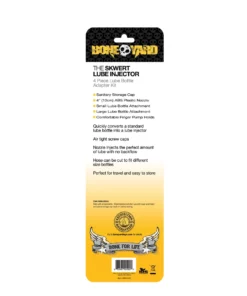 Boneyard Skwert Lube – aplikator środka smarującego to nowoczesne i wygodne rozwiązanie, ktore zamienia większość standardowych butelek z płynem w precyzyjne narzędzie do aplikacji środka smarującego. Dzięki przemyślanej konstrukcji oraz zestawowi praktycznych końcowek, aplikator umożliwia higieniczne, szybkie i precyzyjne dozowanie produktu, eliminując ryzyko zabrudzeń oraz minimalizując straty płynu.