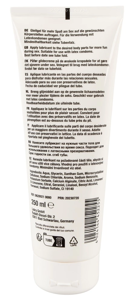 Formuła żelu została opracowana tak, aby nie zawierała tłuszczow ani olejow, zapewniając łatwość w zmywaniu i brak plam na tkaninach. Dzięki temu żel jest w pełni kompatybilny z akcesoriami wykonanymi z rożnych materiałow, a także nie pozostawia śladow na skorze.