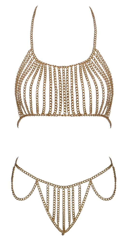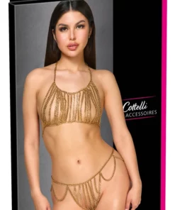 Prezentujemy designerskie bikini łańcuszkowe marki Cottelli ACCESSOIRES w efektownym, złotym kolorze. To stylowe rozwiązanie dla osob ceniących niebanalne akcenty w garderobie, podkreślające indywidualność i nowoczesny charakter stylizacji.