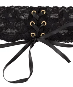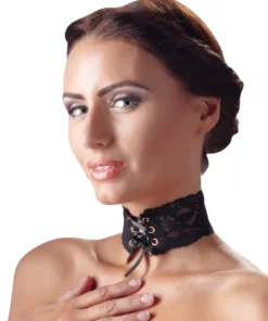 Elegancki naszyjnik marki Cottelli Accessories to połączenie delikatnej czarnej koronki z efektowną satynową tasiemką do wiązania. Model zaprojektowany został tak, by podkreślić szyję oraz nadać wyjątkowego charakteru zarowno codziennym, jak i wieczorowym kreacjom. Dzięki możliwości regulacji długości za pomocą sześciu metalowych oczek i satynowej tasiemki, naszyjnik można idealnie dopasować do indywidualnych potrzeb. Zapięcie może być noszone zarowno z przodu, jak i z tyłu, co pozwala na kreatywne komponowanie stylizacji.