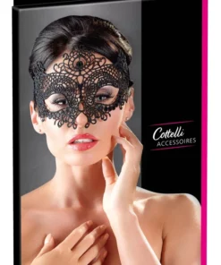 Cottelli Accessoires maska koronkowa na oczy wiązana czarna to stylowy dodatek, ktory doda wyjątkowego charakteru każdej stylizacji. Wykonana z wysokiej jakości, delikatnego haftu, prezentuje misterny wzor i subtelnie podkreśla spojrzenie. Otwory na oczy zapewniają wygodę użytkowania, a szeroka koronkowa wstążka umożliwia łatwe dopasowanie do kształtu głowy i pewne mocowanie z tyłu. Ten model łączy elegancję oraz komfort, będąc doskonałym wyborem na wieczorne wyjścia, bale maskowe czy wyjątkowe okazje.