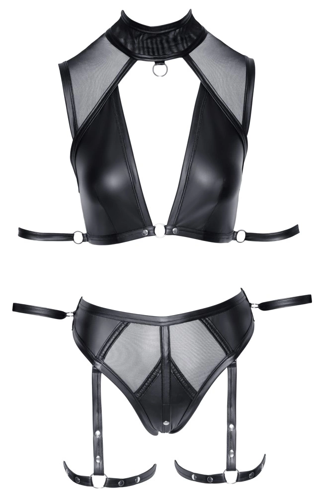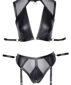 Wyjątkowy komplet marki Cottelli Bondage – top i majtki XL w matowym czarnym wykończeniu z designerskimi paskami!