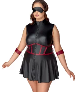 Cottelli Bondage Plus – Sukienka Czarna Matowa z Czerwonymi Wstawkami XL to nowoczesny model zaprojektowany z myślą o osobach ceniących nietuzinkowy styl i funkcjonalność. Ta krotka sukienka o dopasowanym kroju i rozkloszowanej spodnicy prezentuje się elegancko dzięki szlachetnemu, matowemu wykończeniu oraz kontrastującym czerwonym paskom w talii, ktore wizualnie modelują sylwetkę i nadają całości efekt gorsetu.