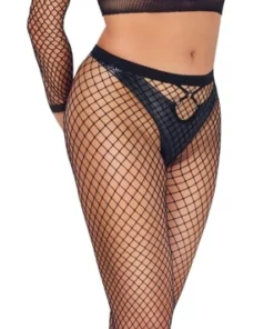 Cottelli Collection Fantasy – Kompletny zestaw siateczkowy: top i legginsy S-L, kolor czarny