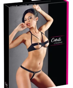 Wyjątkowy zestaw bielizny Cottelli Collection to propozycja dla osob ceniących oryginalny design i komfort. Zestaw składa się z otwartego biustonosza na fiszbinach oraz stylowych stringow, ktore razem tworzą elegancką, a jednocześnie wyrazistą całość.