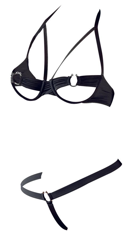 - Dodatki: metalowe pierścienie przy biustonoszu i stringach