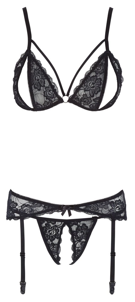 - Trzyczęściowy zestaw: biustonosz, pas do pończoch, majtki