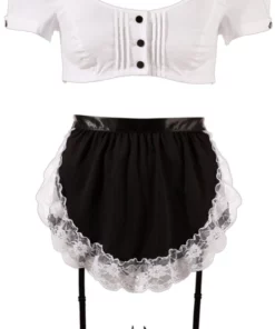 - Kompletny zestaw 6 elementow: top, majtki, pończochy, fartuszek, opaska, kołnierz