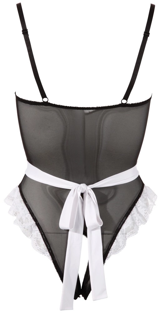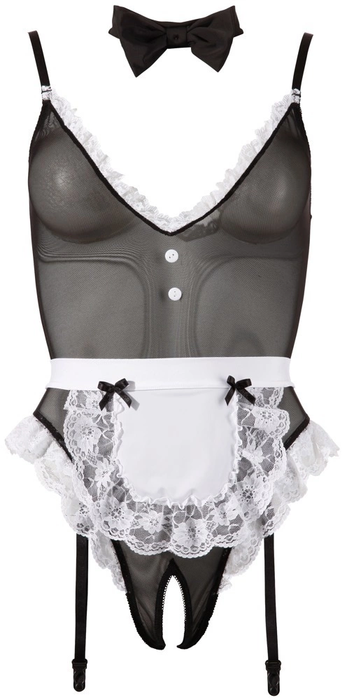 Cottelli Costumes Komplecik Pokojowki XL to elegancki zestaw kostiumowy, ktory doskonale sprawdzi się podczas wyjątkowych okazji. Model został wykonany z wysokiej jakości powernetu i ozdobiony subtelną koronką, co zapewnia atrakcyjny wygląd oraz wygodę użytkowania. Regulowane ramiączka i odpinane szelki pozwalają na dopasowanie do sylwetki, a wygodne zapięcia gwarantują łatwość zakładania i ściągania.