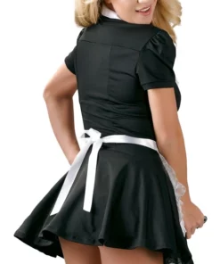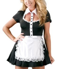Cottelli Costumes Stroj Kelnerki XL to klasyczna propozycja dla osob szukających stylowego stroju inspirowanego wzornictwem uniformow obsługi. Komplet łączy elegancję z wygodą, oferując czarną sukienkę mini z białym kołnierzykiem i zapięciem na guziki. Przy dekolcie znajduje się delikatna falbanka, nadająca całości subtelnego uroku. Dodatkowym elementem zestawu jest biały fartuch, ktory można wygodnie zawiązać z tyłu, co pozwala na dopasowanie go do sylwetki.