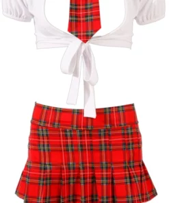 - Kompletny zestaw: mini spodniczka, koszula, krawat, pończochy