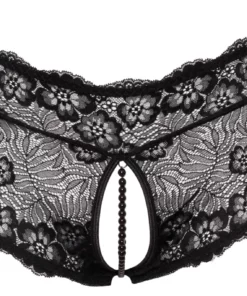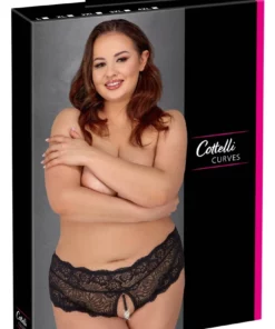 Cottelli CURVES figi koronkowe czarne z perełkami i satynową wstążką, rozmiar 4XL