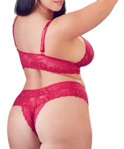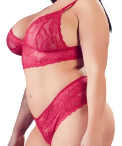 Cottelli Curves komplet koronkowy czerwony – stanik bez zapięcia i stringi bez kroku, rozmiar 2XL