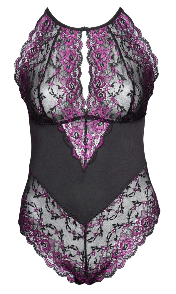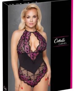 Przedstawiamy anatomiczne body marki Cottelli Curves w rozmiarze 4XL, zaprojektowane z myślą o kobietach ceniących sobie wyjątkowy styl i wygodę. Model wykonano z wysokogatunkowej, dwukolorowej koronki o dekoracyjnym, kwiatowym wzorze, ktora została połączona z nieprzezroczystą wstawką w talii. Taki design podkreśla sylwetkę i nadaje całości subtelności oraz klasy.