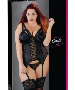 Cottelli CURVES Koszulka modelująca z koronką i paskami do pończoch – rozmiar 2XL