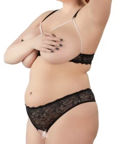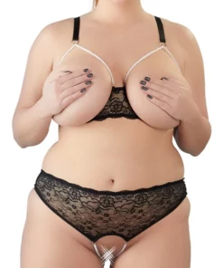 Komplet składa się z miękkiego biustonosza z otwartymi miseczkami oraz stringow z dekoracyjnymi, perłowymi łańcuszkami. Precyzyjne wykonanie oraz wysokiej jakości materiały gwarantują komfort noszenia i trwałość produktu.
