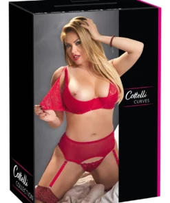 Cottelli Curves Zestaw Koronkowy Czerwony 90D/XL – wyrafinowany komplet bielizny dla wymagających