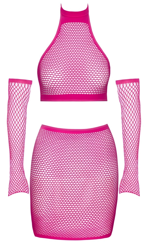 Cottelli Fantasy – Siatkowy Komplet w Kolorze Rożowym, Rozmiar S-L