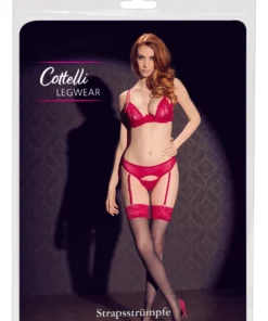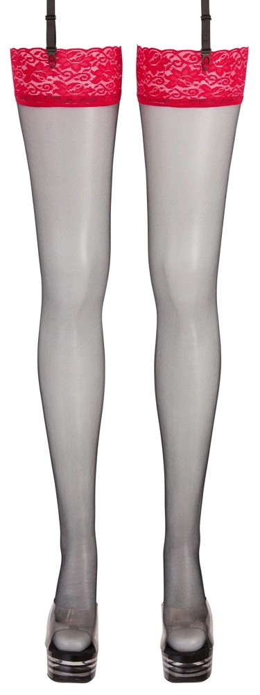 Cottelli Legwear — Klasyczne pończochy czarne z dekoracyjną czerwoną koronką