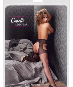 Cottelli Legwear – czarne rajstopy z eleganckim pasem koronkowym, rozmiar S/M