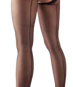 Cottelli LEGWEAR – Rajstopy z otwartą strefą i ozdobnym szwem z tyłu, czarne