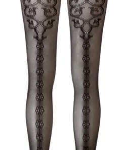 Rajstopy wykonane są z wysokiej jakości, delikatnej siateczki, a ich unikalna, otwarta konstrukcja w części krocza zapewnia wygodę i funkcjonalność. Zastosowany szeroki pas do pończoch doskonale podkreśla sylwetkę, a tkany wzor szwow z tyłu nogi nadaje całości wyrafinowanego charakteru.