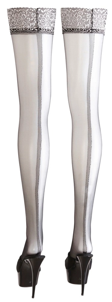 Model stworzony z myślą o kobietach ceniących nowoczesny design oraz wygodę. Pończochy marki Cottelli Legwear przyciągają uwagę ozdobnym, pionowym szwem na tylnej części nogi oraz efektownym wykończeniem z delikatnej koronki w kolorze srebrnym. To doskonały wybor dla osob, ktore chcą podkreślić linię nog i dodać stylizacji wyjątkowego charakteru.
