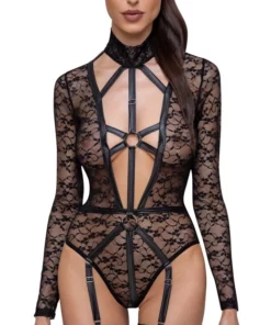 Elegancja i wyrafinowany styl – body koronkowe Cottelli LINGERIE z długim rękawem