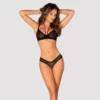 Całość wykonana została z wysokogatunkowej, elastycznej koronki, ktora doskonale dopasowuje się do sylwetki, podkreślając jej atuty. Długi rękaw i subtelna stojka sprawiają, że body prezentuje się niezwykle efektownie zarowno samodzielnie, jak i jako element stylizacji. Wysoko wycięte nogawki typu riostring optycznie wydłużają nogi, a zapięcie na praktyczne napy w dolnej części zwiększa wygodę użytkowania.