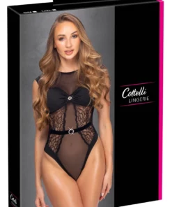 Eleganckie body marki Cottelli Lingerie w rozmiarze L/XL to propozycja dla osob ceniących połączenie wyrafinowanego stylu i wygody użytkowania. Model ten został wykonany z wysokiej jakości materiałow – delikatnej koronki, transparentnej siateczki typu powernet oraz miękkiej mikrofibry, co gwarantuje doskonałe dopasowanie do sylwetki i komfort noszenia przez cały dzień.