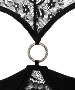 Biustonosz został zaprojektowany tak, aby podkreślać naturalny kształt sylwetki. Lekko usztywniana konstrukcja delikatnie unosi biust, a wyrafinowane koronki nadają całości lekkości i stylowego charakteru. Ozdobny, połyskujący pierścień umieszczony w centralnej części stanowi unikalny akcent dekoracyjny.