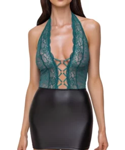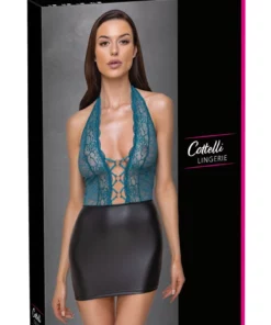 Cottelli LINGERIE sukienka matowa z koronkową gorą XL czarno-zielona to propozycja dla osob ceniących połączenie elegancji z nowoczesnym stylem. Ten model przyciąga uwagę nietuzinkowym designem: gorna część wykonana została z subtelnej, zielonej koronki, natomiast dolna część to efektowna, matowa czarna spodnica. Sukienka prezentuje się niezwykle stylowo i podkreśla sylwetkę, idealnie nadając się na wyjątkowe okazje.