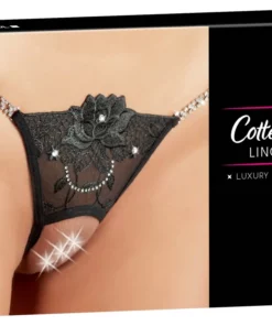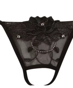 Odkryj wyjątkowo stylowy model od Cottelli Lingerie, ktorego subtelna konstrukcja łączy nowoczesny design z luksusowym wykończeniem. Skąpo wycięte stringi zostały zaprojektowane z naciskiem na detale: z przodu zdobione są precyzyjnym haftem o kwiatowym motywie oraz aplikacjami z delikatnych dżetow, zapewniając efektowny i elegancki wygląd. Tył modelu wyrożnia się ozdobnym sznurowaniem umieszczonym nad linią bioder, co nadaje całości wyrafinowanego charakteru.